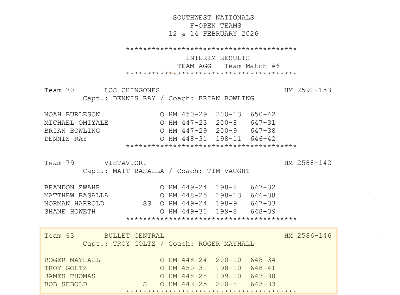 Huge congratulations to the Bullet Central F-Open team for their outstanding performance this past week! Competing against the best in the world on February 12th and 14th, the team stayed focused through every string to secure 3rd Place Overall with a solid team aggregate of 2586-146.