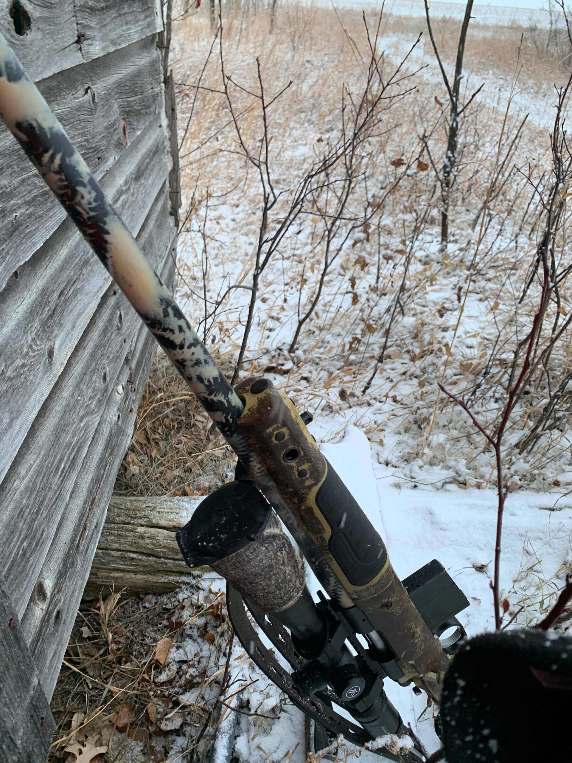 The the rifle leaning on the shed was taken on a Canadian whitetail hunt in Manitoba. It had a TacSport trigger with a “Gator” shoe in it, and it worked fine.